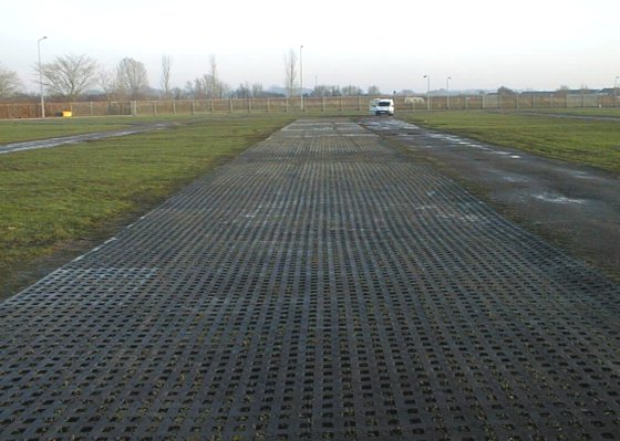 Perfo standard tiles used to stabilise a grass area used for parking at the UK's largest open air market. Previously vehicles frequently become bogged down during wet weather. The Perfo tiles resolved this issue.